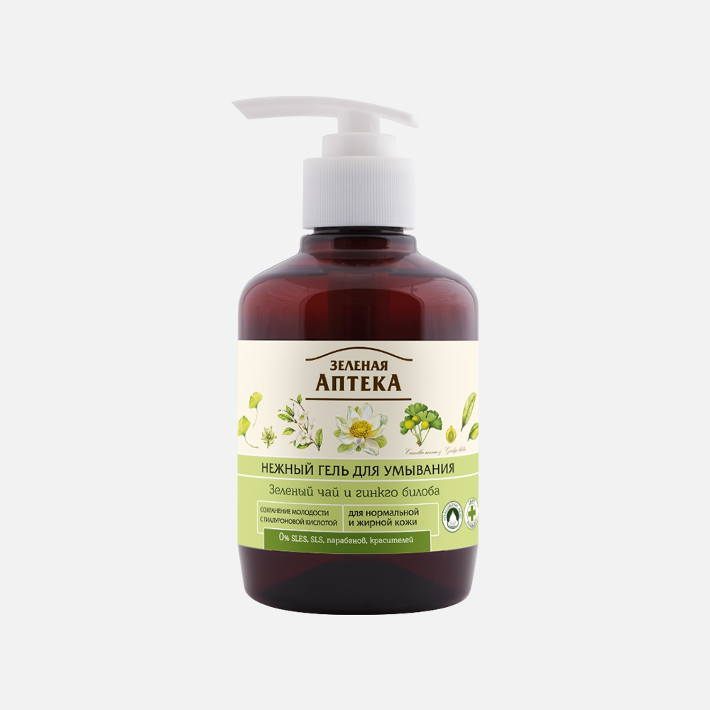 Gel rửa mặt Zelenaya Apteka chiết xuất Trà xanh và Lá bạch quả 270ml - Dành cho da thường và da dầu
