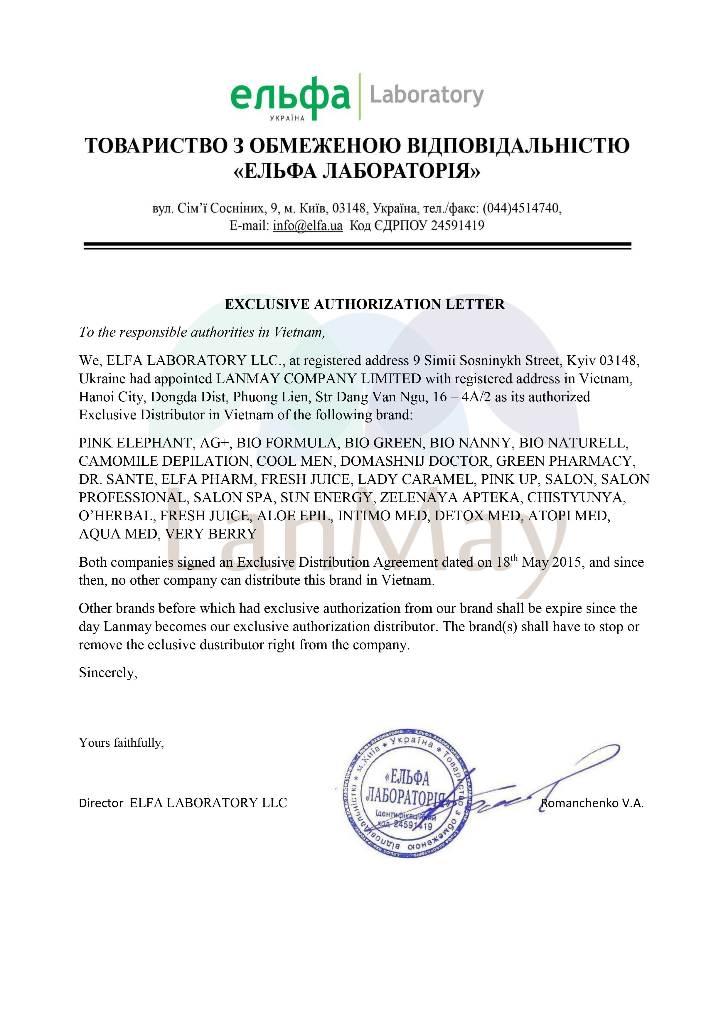 Tin tức 28 Tháng 03 Đăng bởi: Công ty TNHH LANMAY Thư ủy quyền phân phối các nhãn hàng thuộc nhà máy ELFA Laboratory Viết bình luận của bạn: Gửi bình luận
